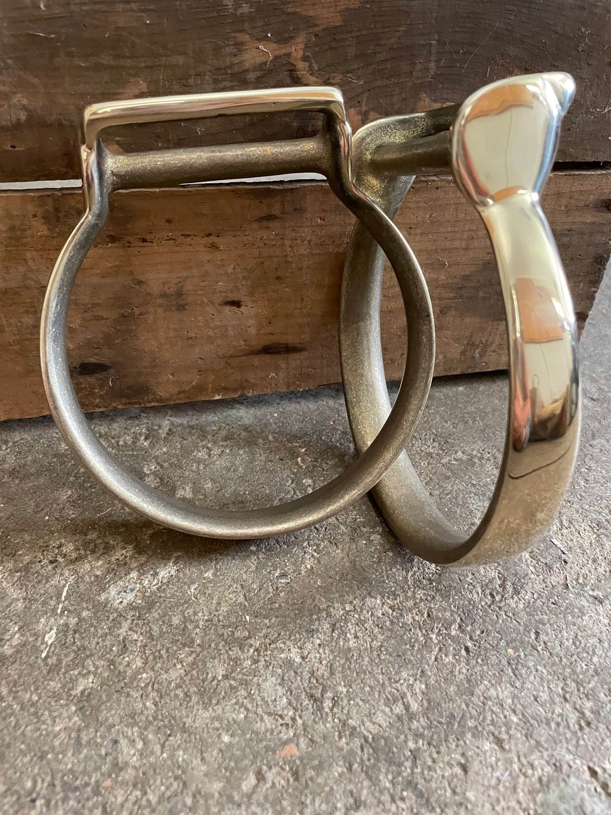 Solid bronze cast stirrups, 5" across with anti-flip bar